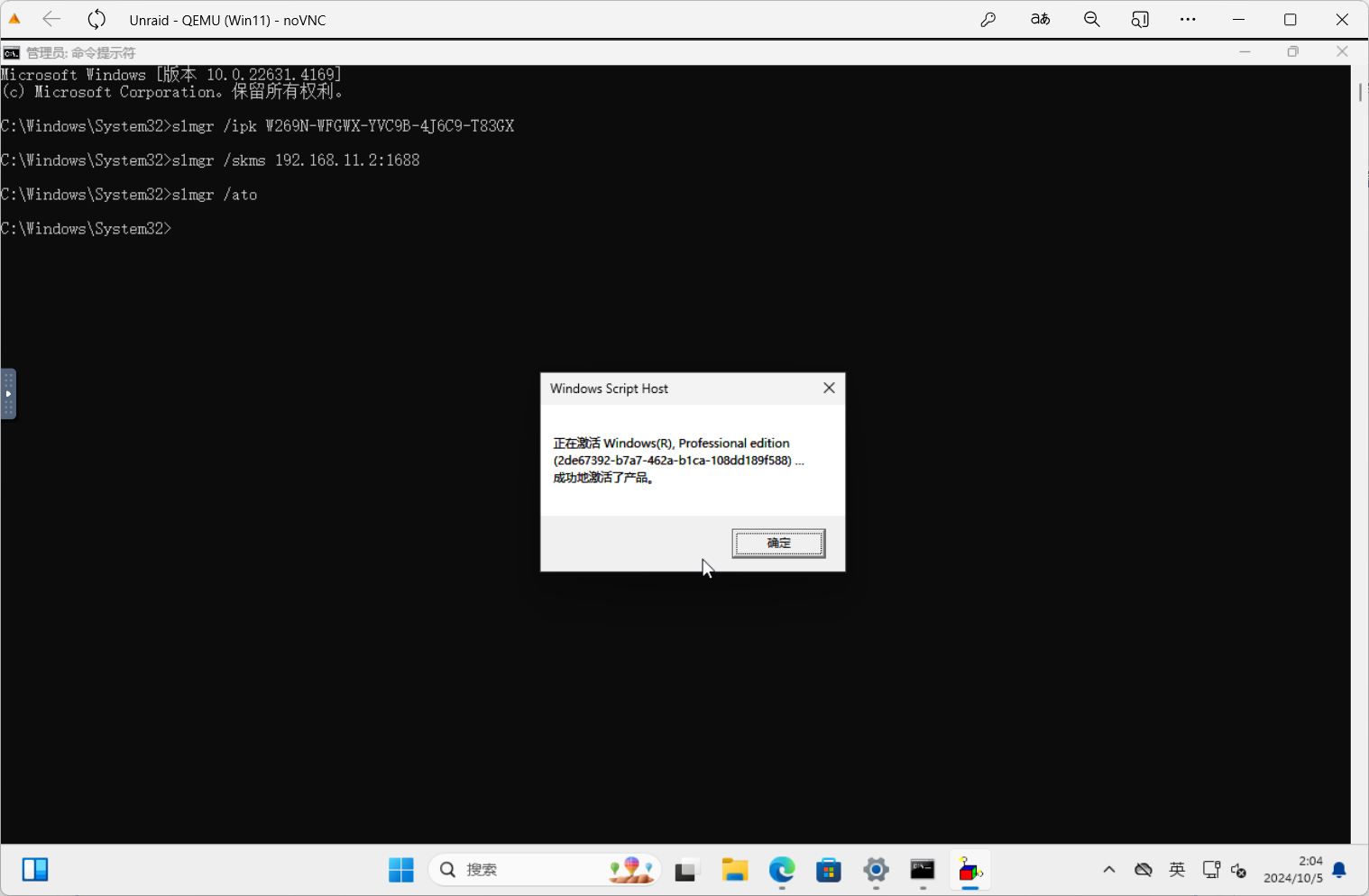 输入下面指令把Windows 11的激活服务器换成你自己kms服务器的地址