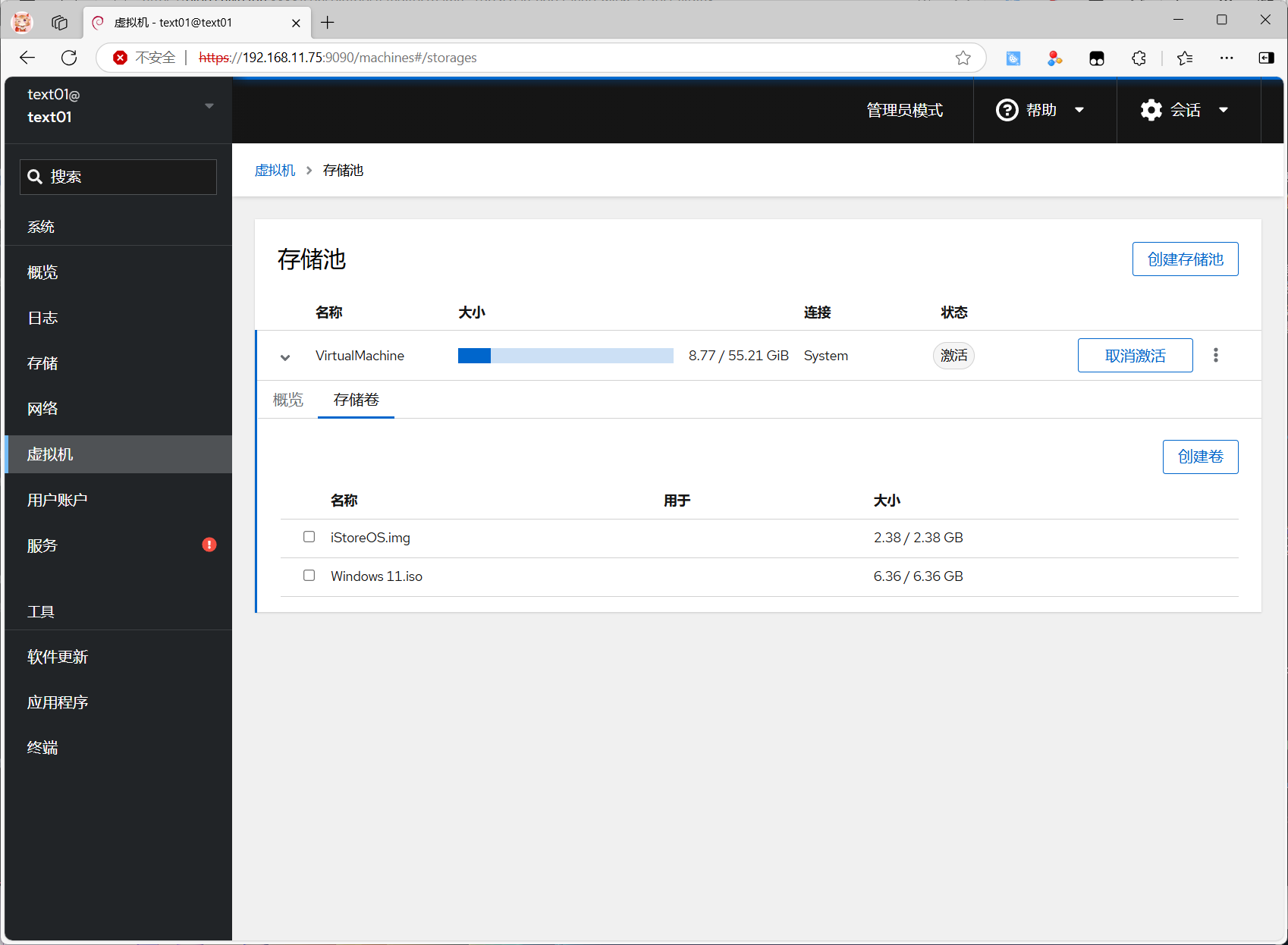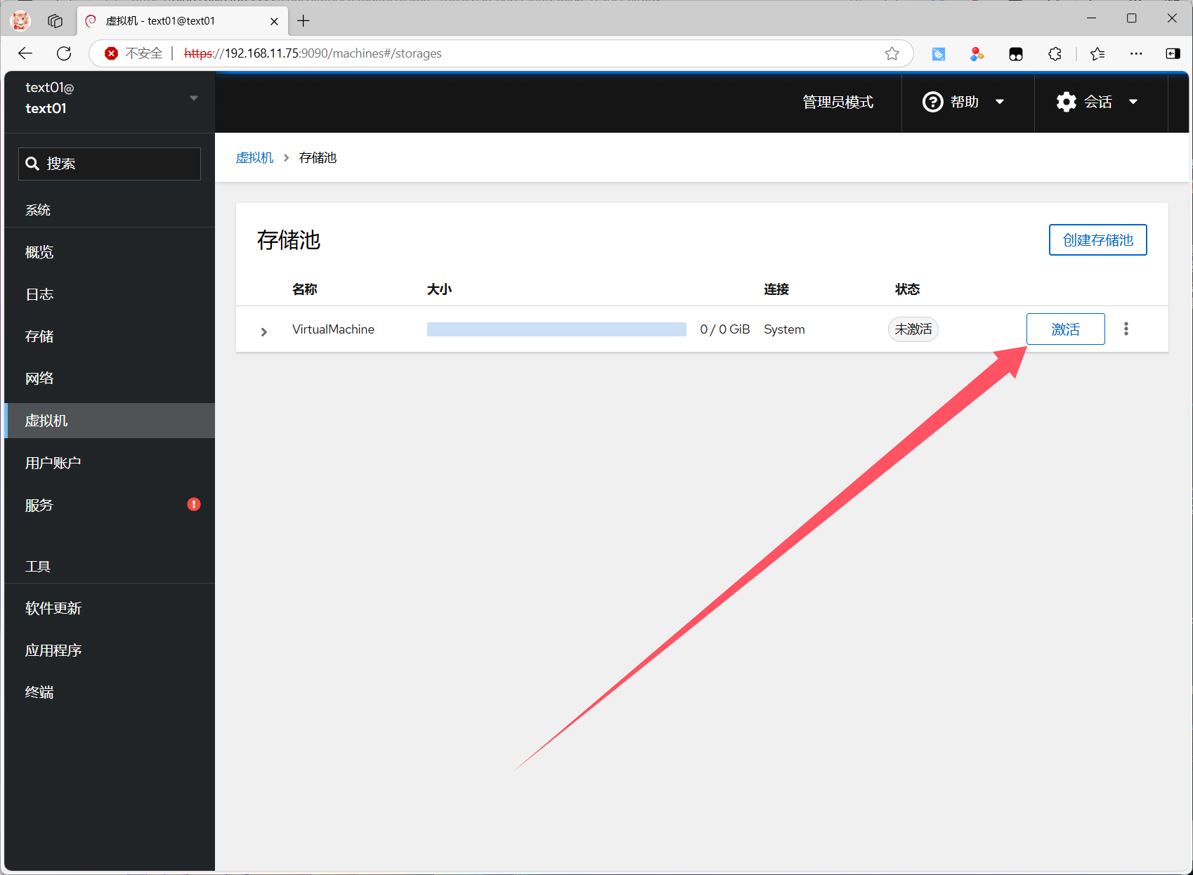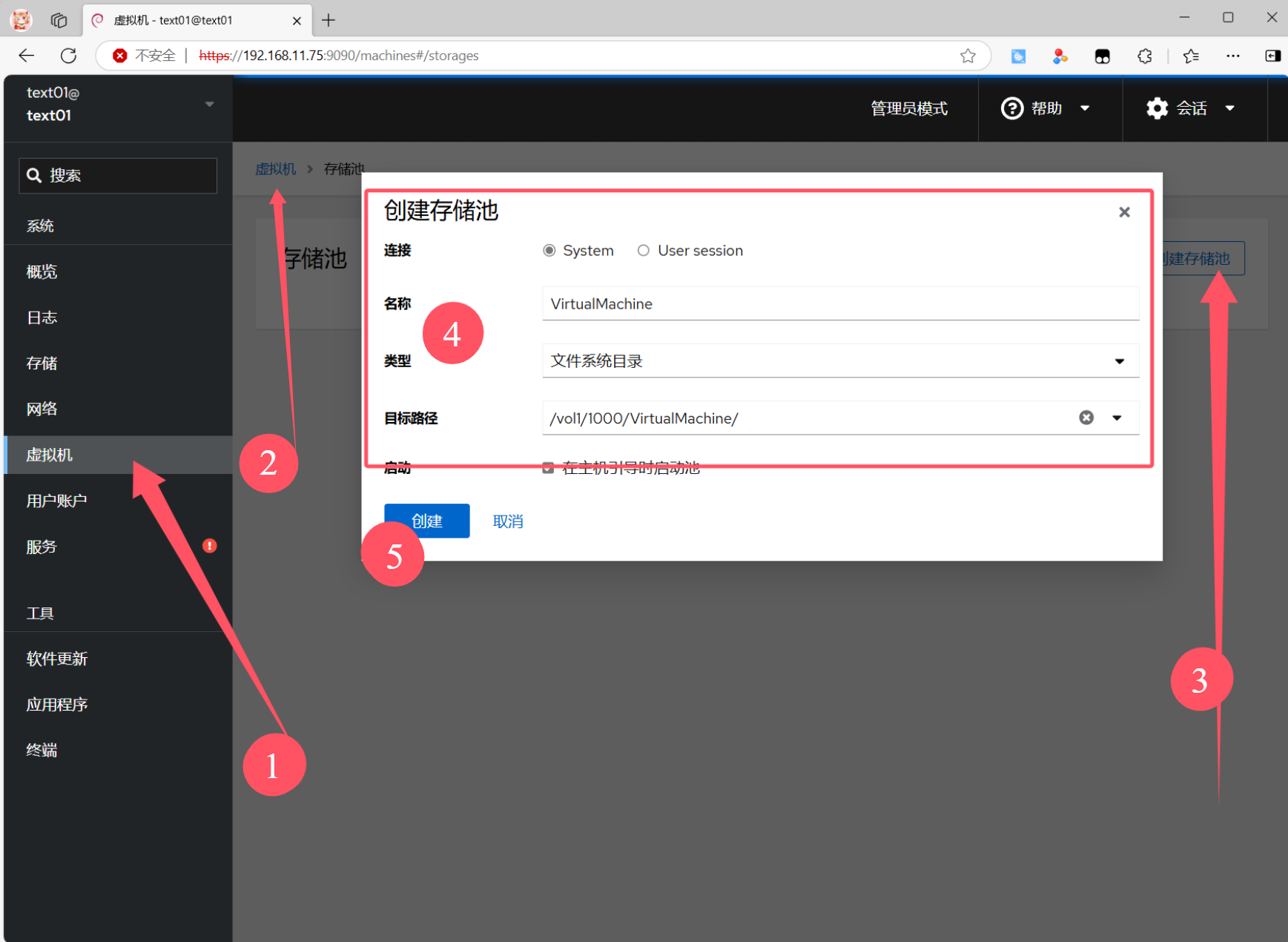 顺序:虚拟机-左上角存储池-右边创建存储池