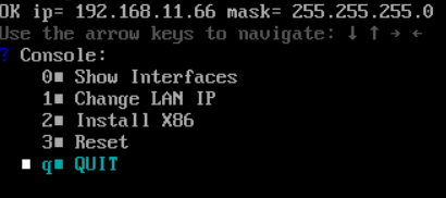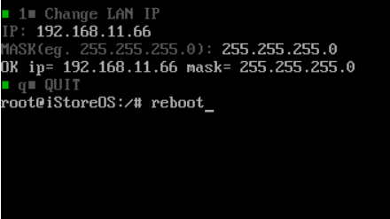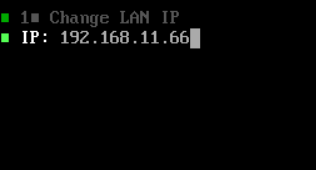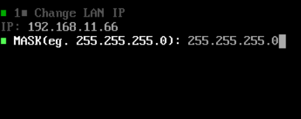 按键盘上下键移动关标到1.Change LAN IP,然后回车,修改lan口的ip地址