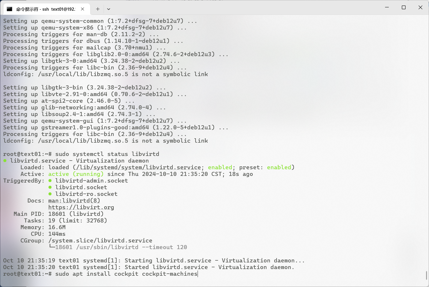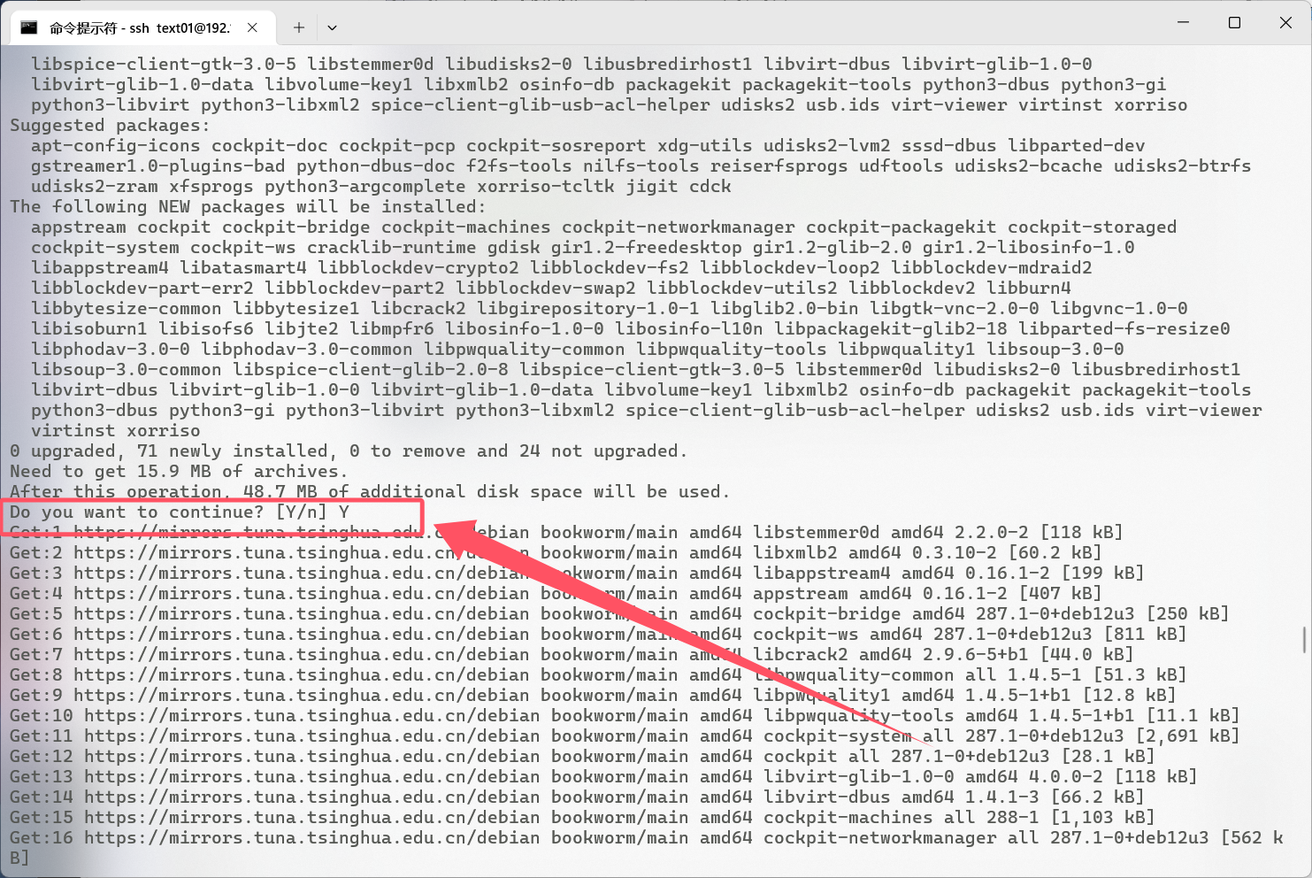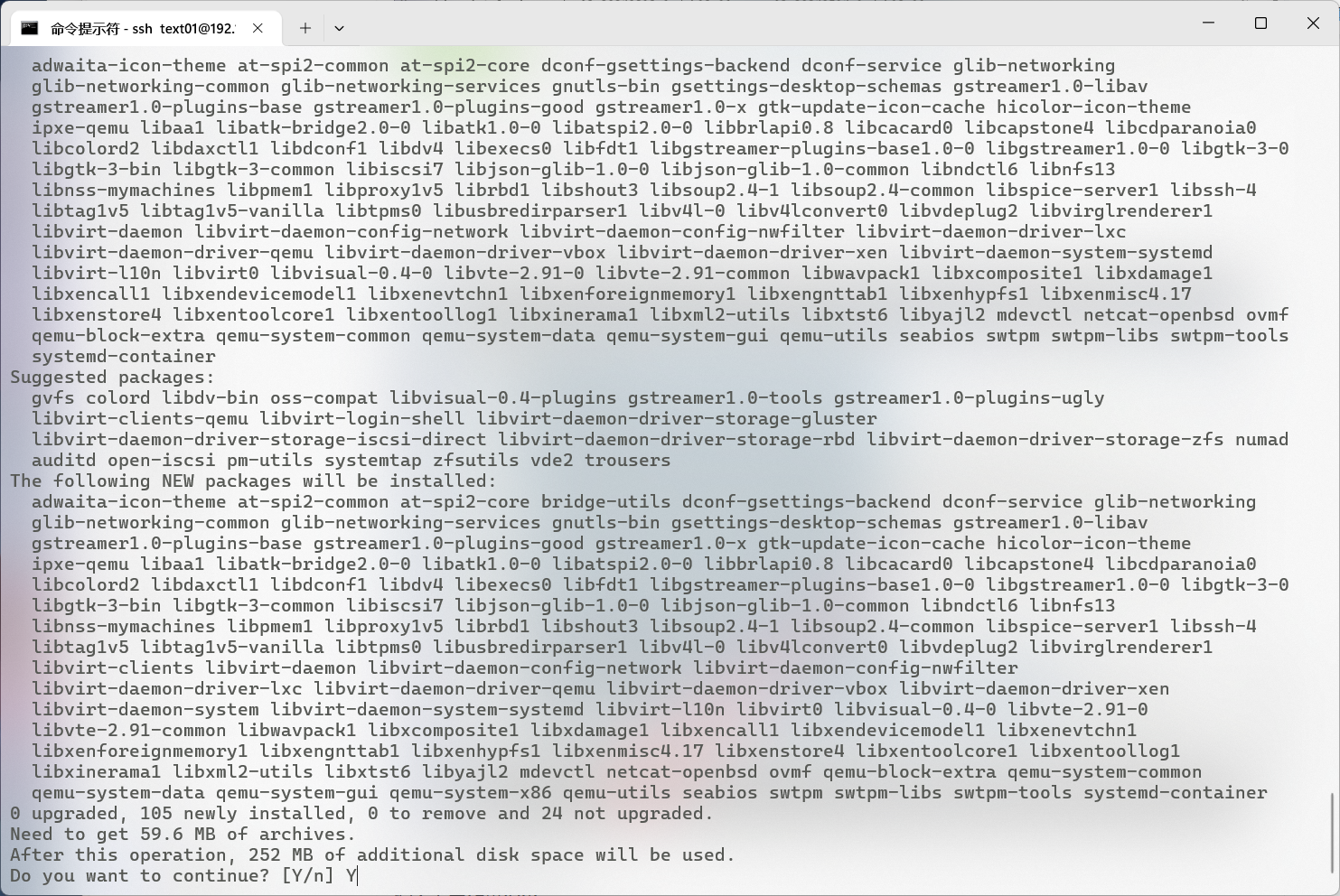 sudo apt install qemu-kvm libvirt-daemon-system libvirt-clients bridge-utils回车,如果遇见下面这个直接输入Y回车