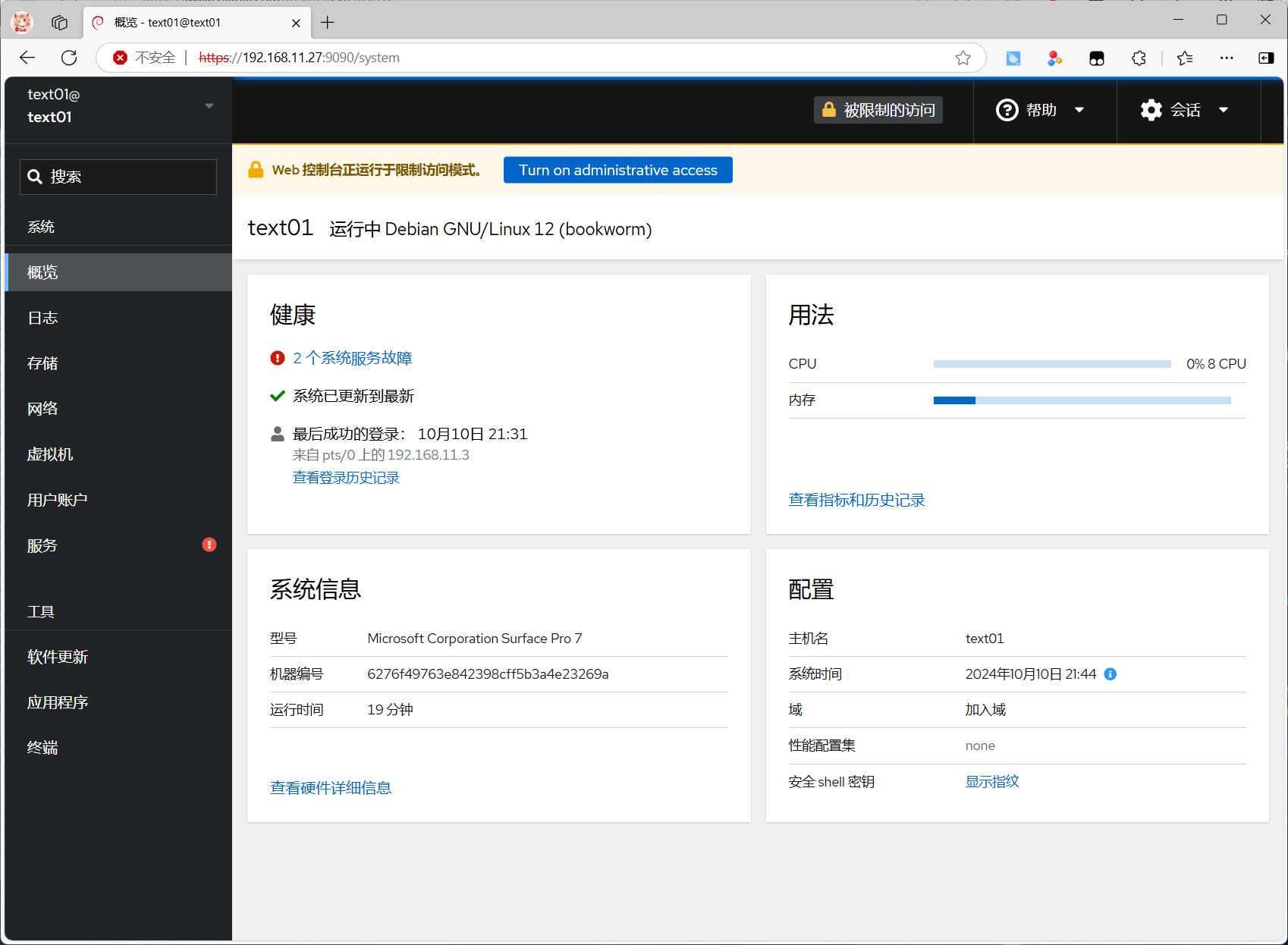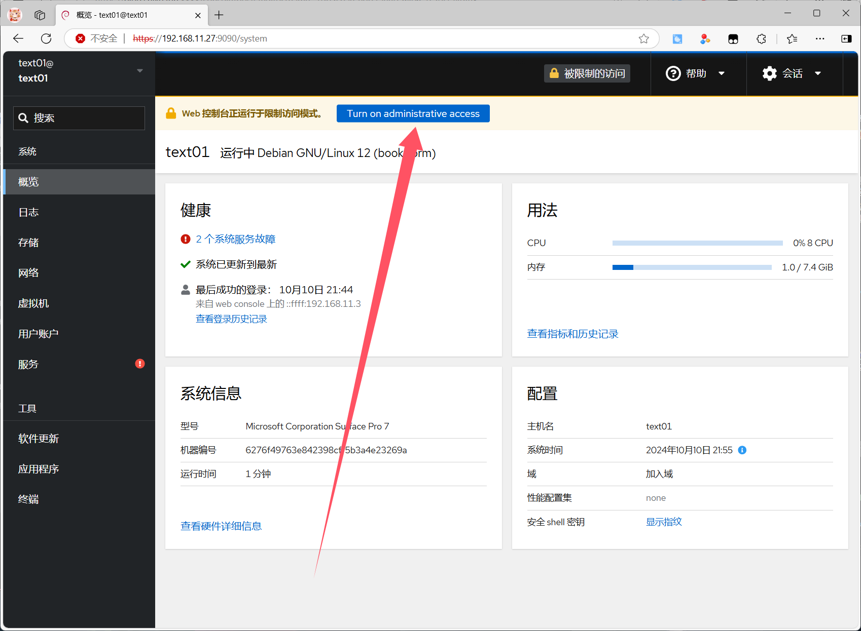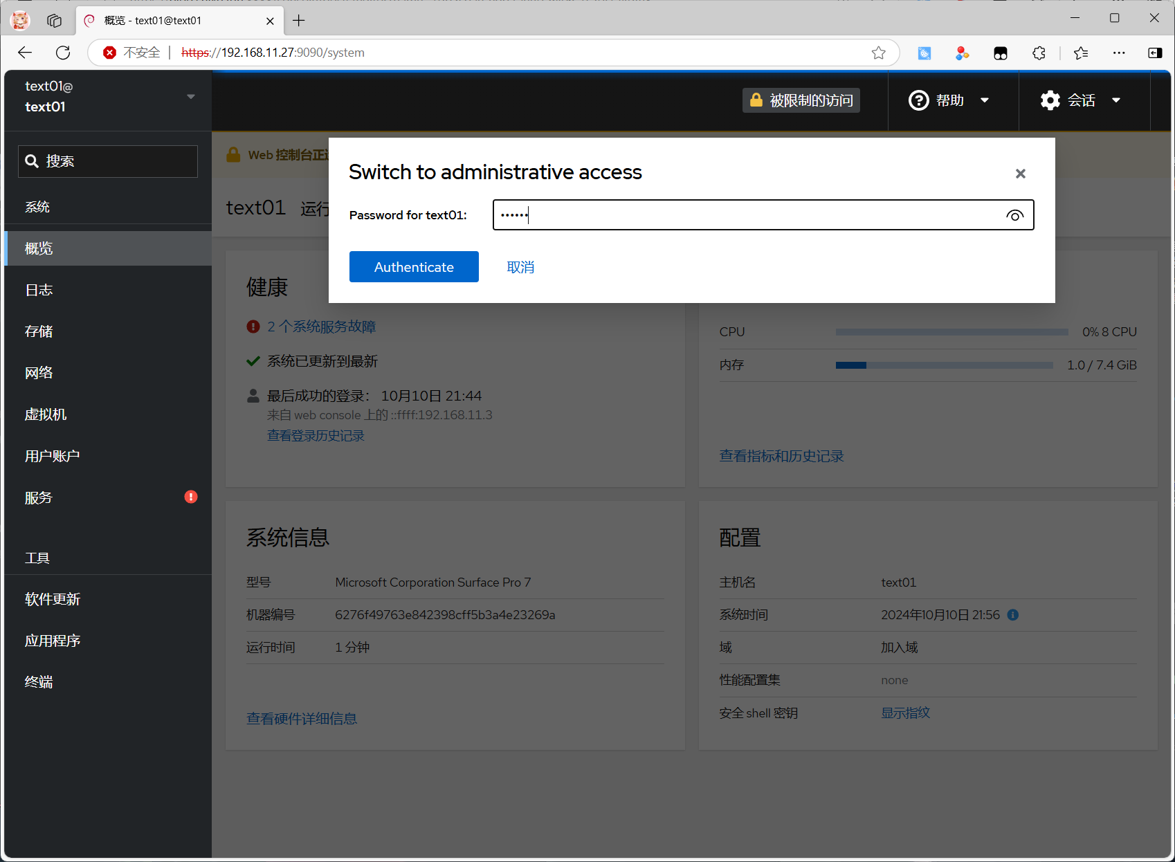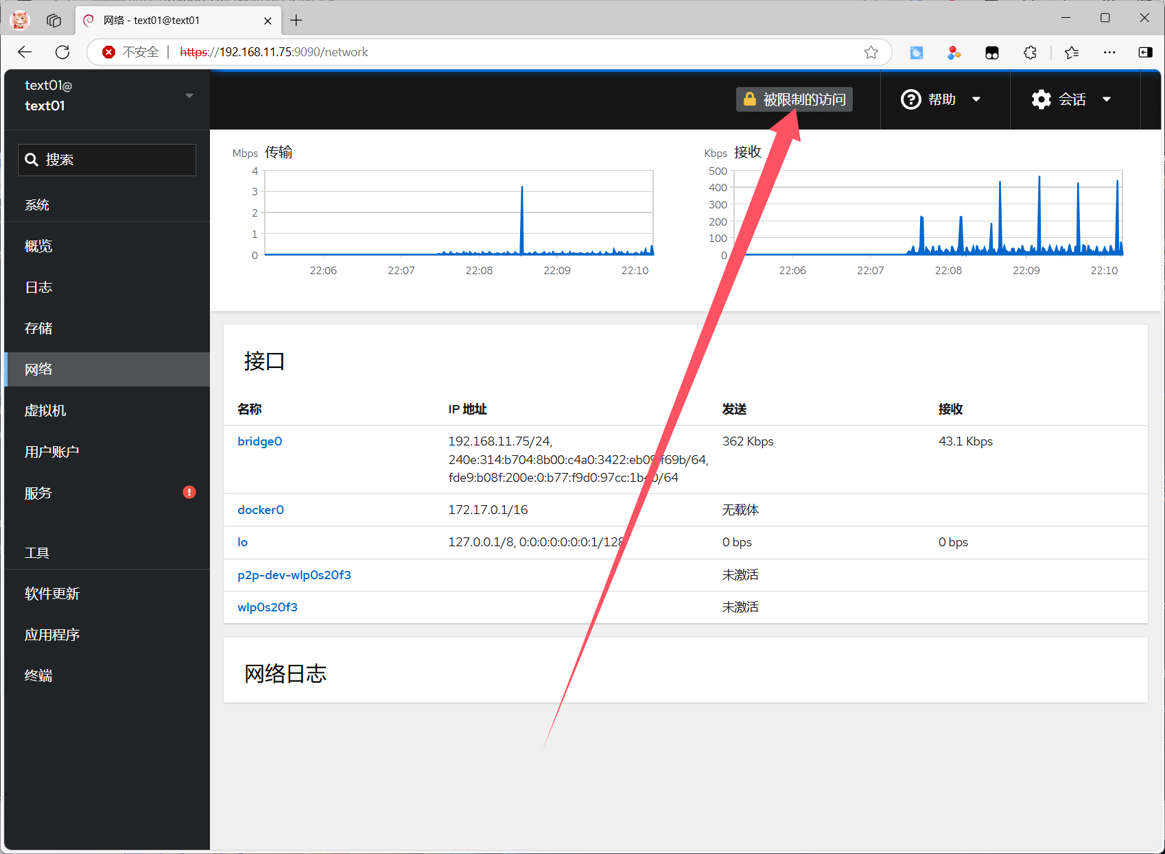安装完成后即可打开浏览器,输入以下地址访问Cockpit: