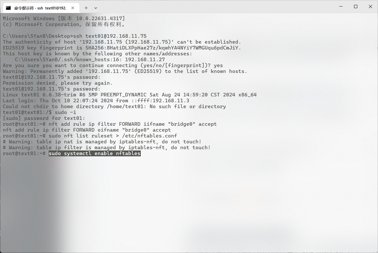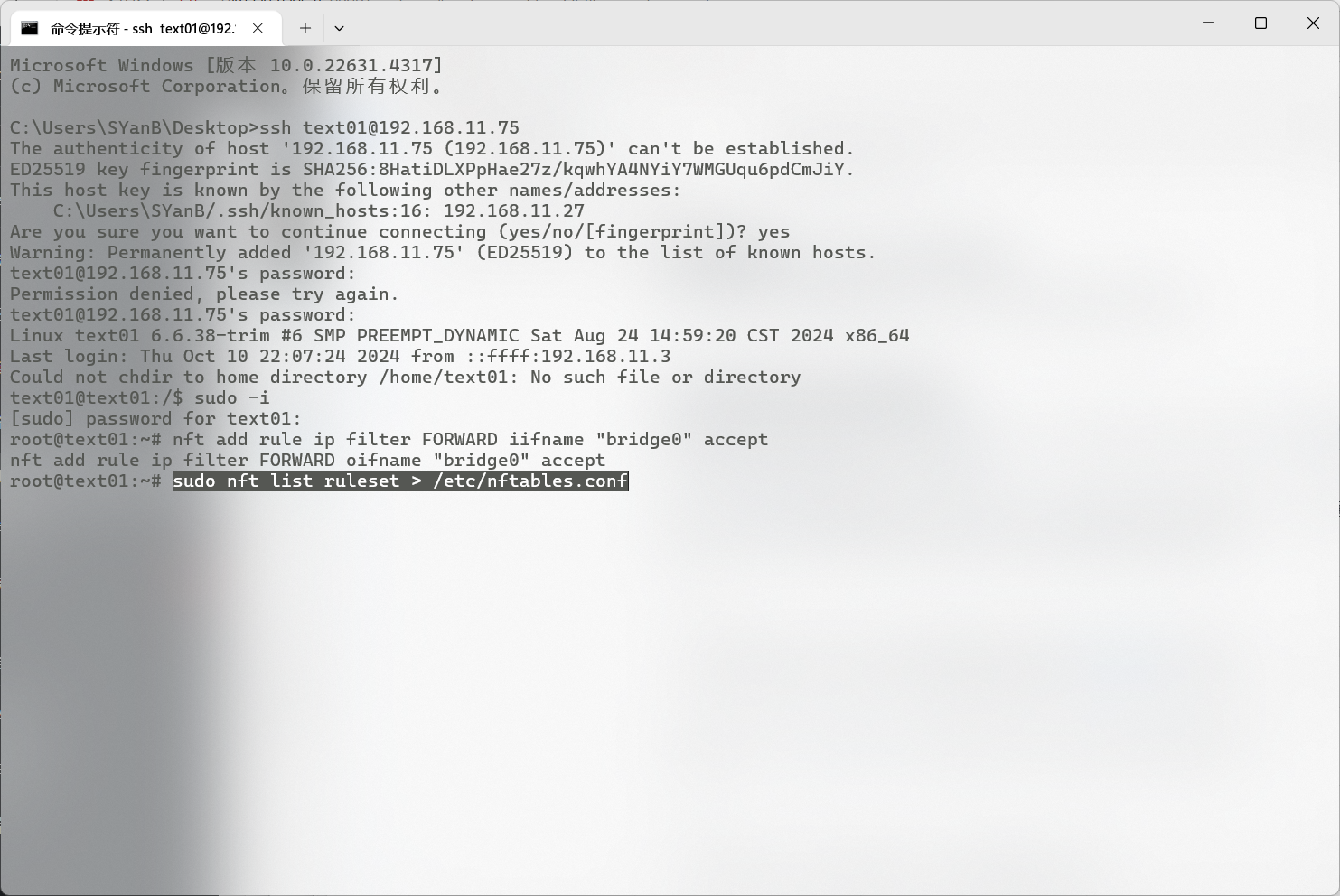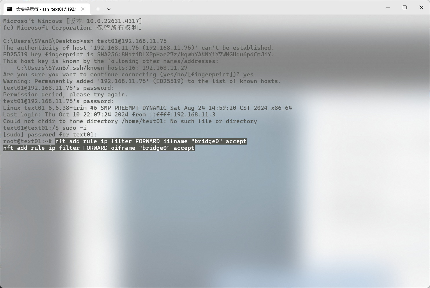 解决虚拟机无法 ping 通网桥(如 bridge0)内其他主机的问题,需要在 nftables 的规则中添加放行 bridge0 网桥的规则