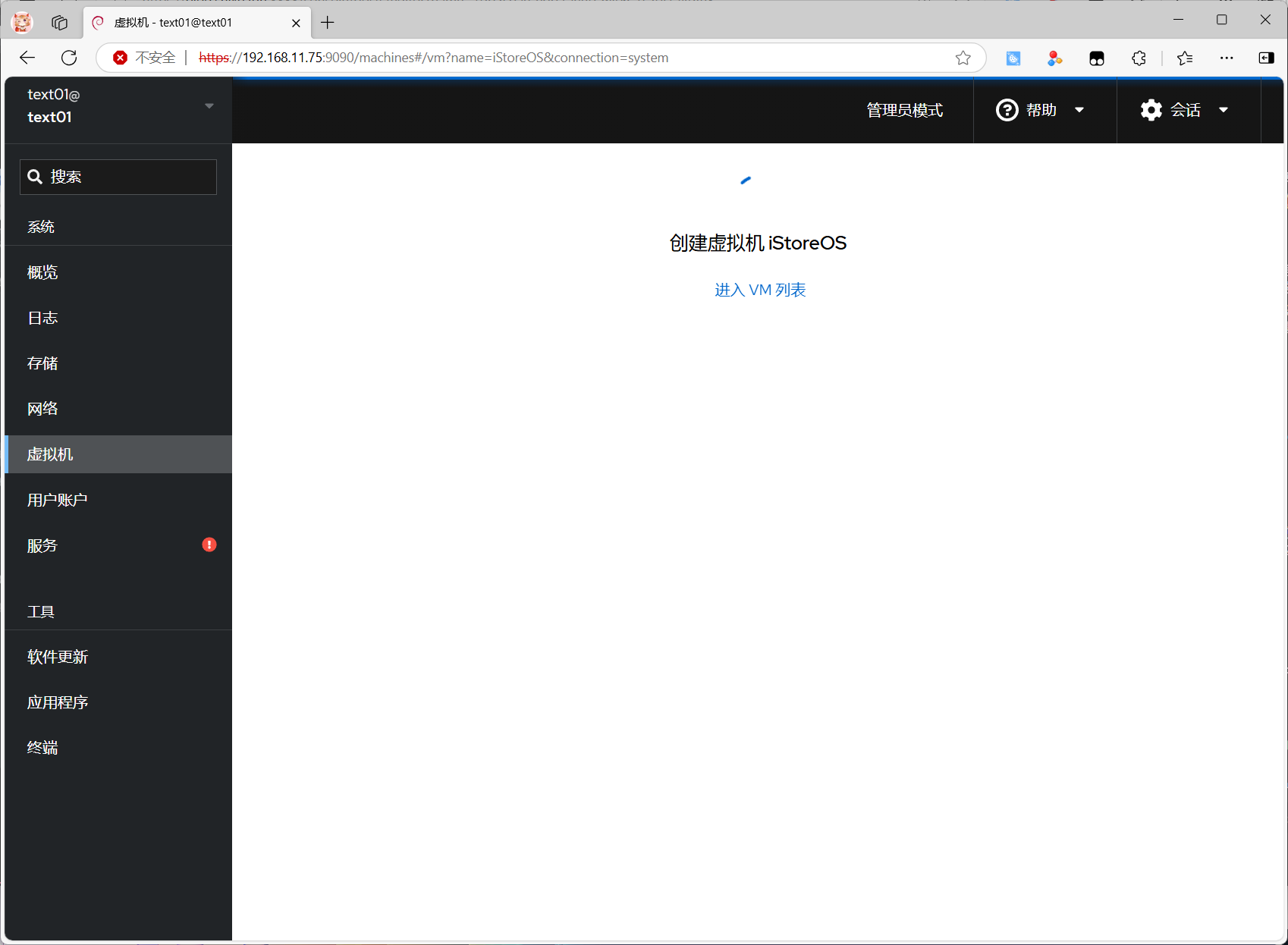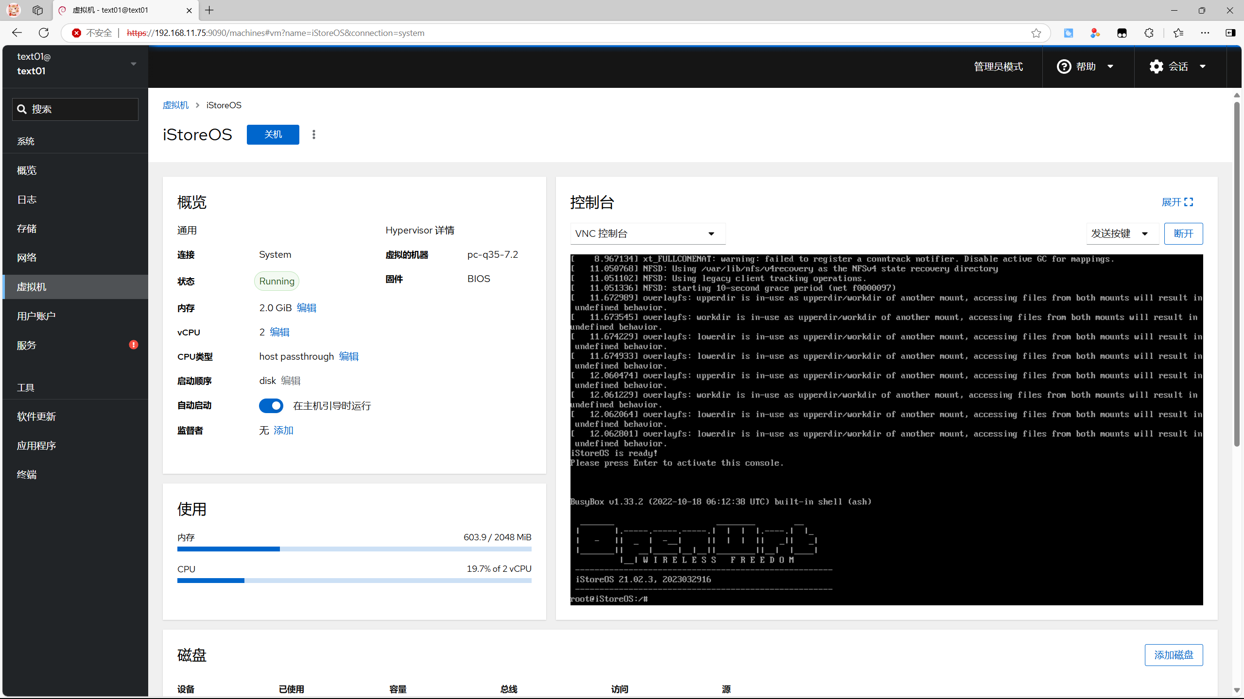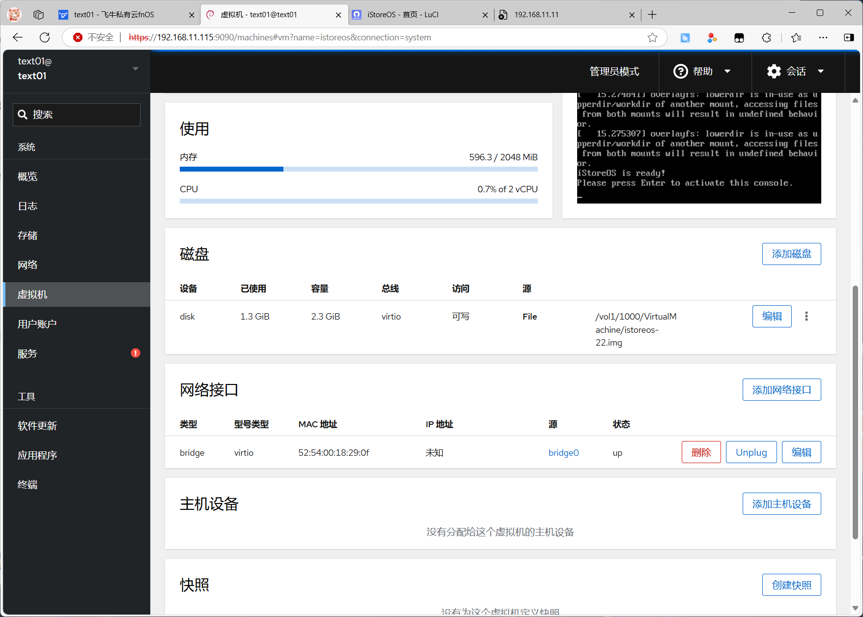 重启后发现iStoreOS管理页面可以正常打开,说明虚拟机自启动成功