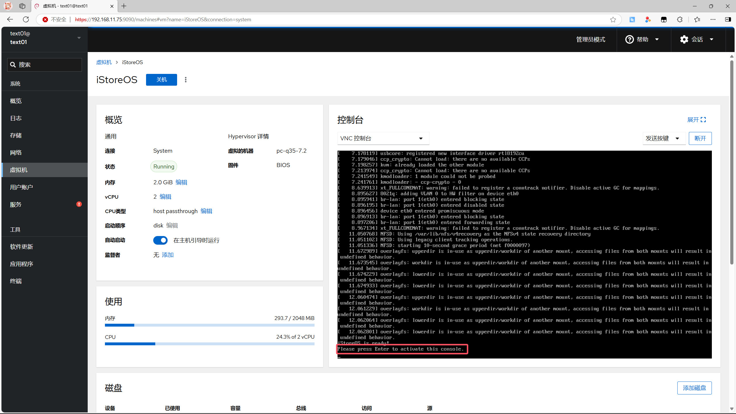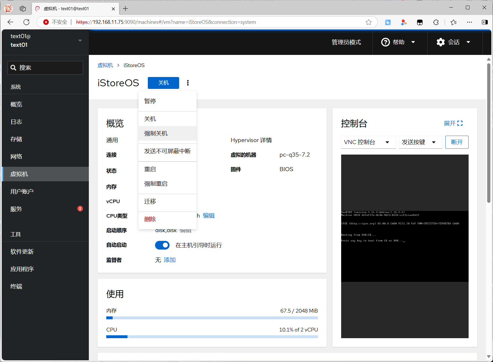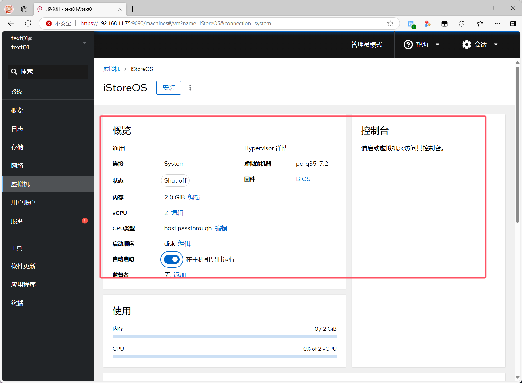 重启后发现iStoreOS管理页面可以正常打开,说明虚拟机自启动成功