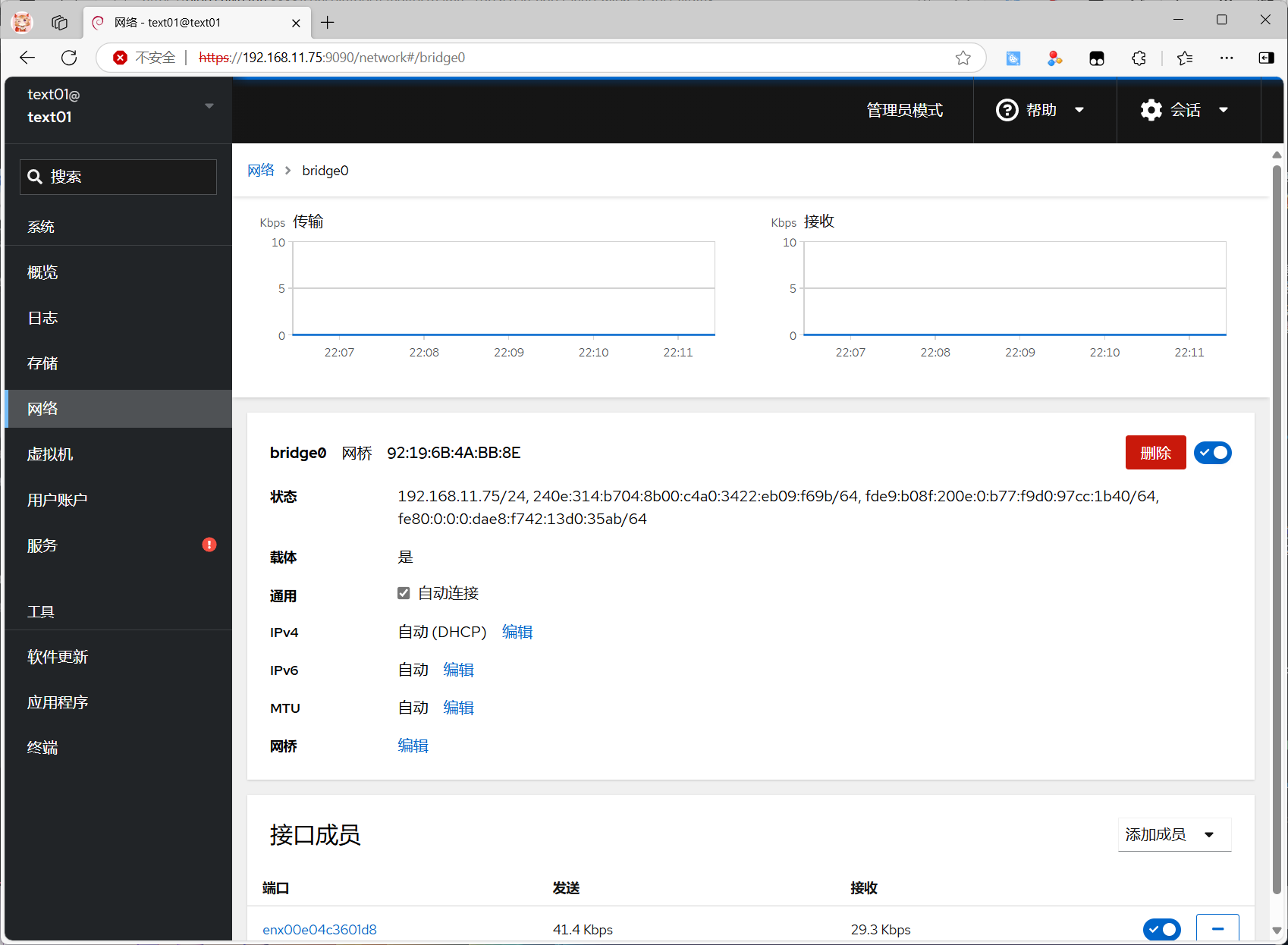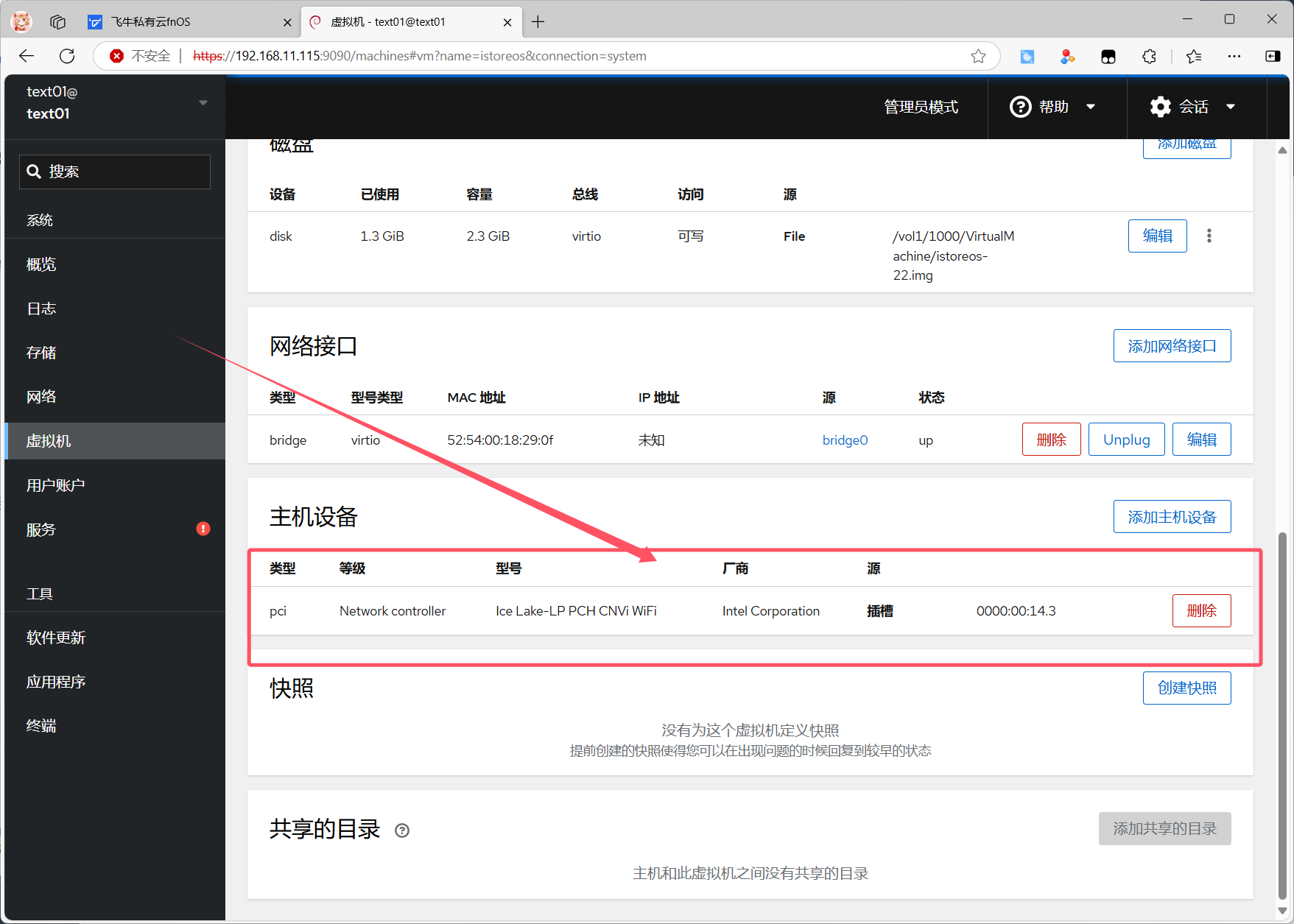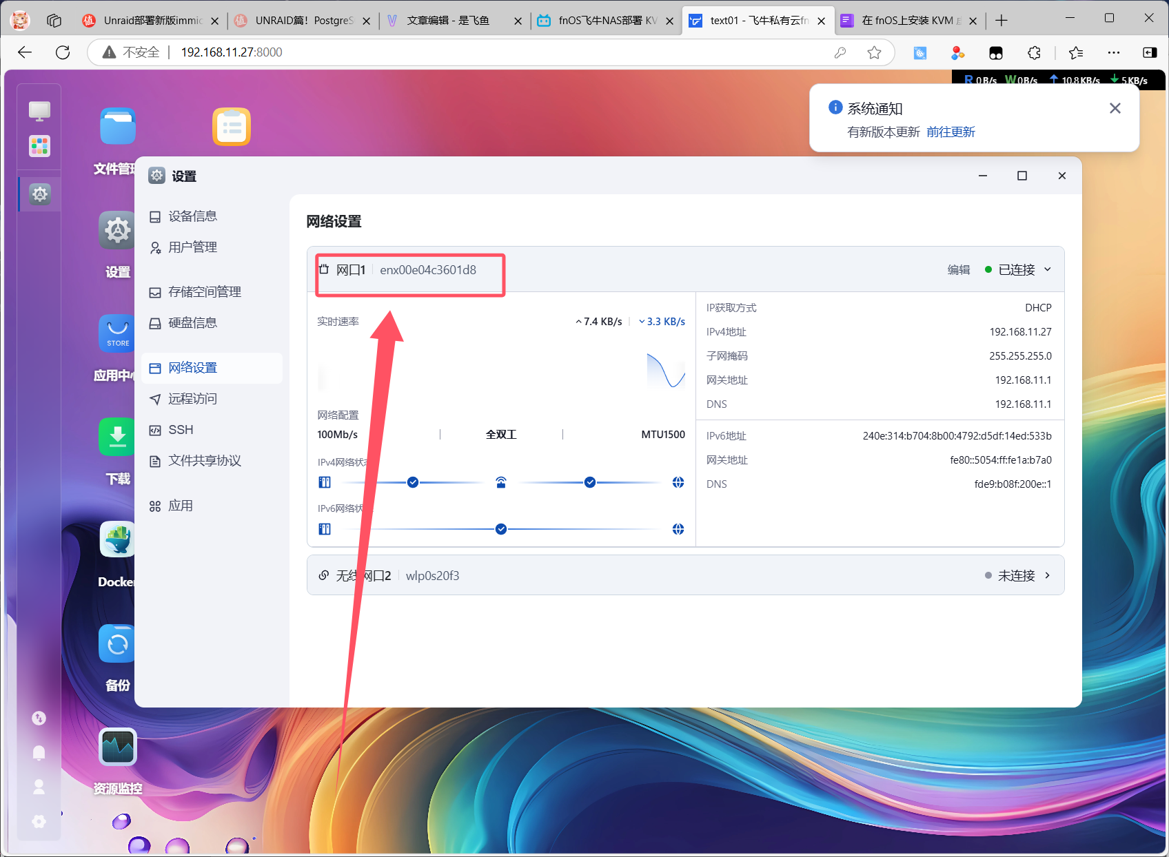 桥接后的网卡将不再显示在飞牛系统的管理面板中,但不影响使用,后续会说调整IP方法