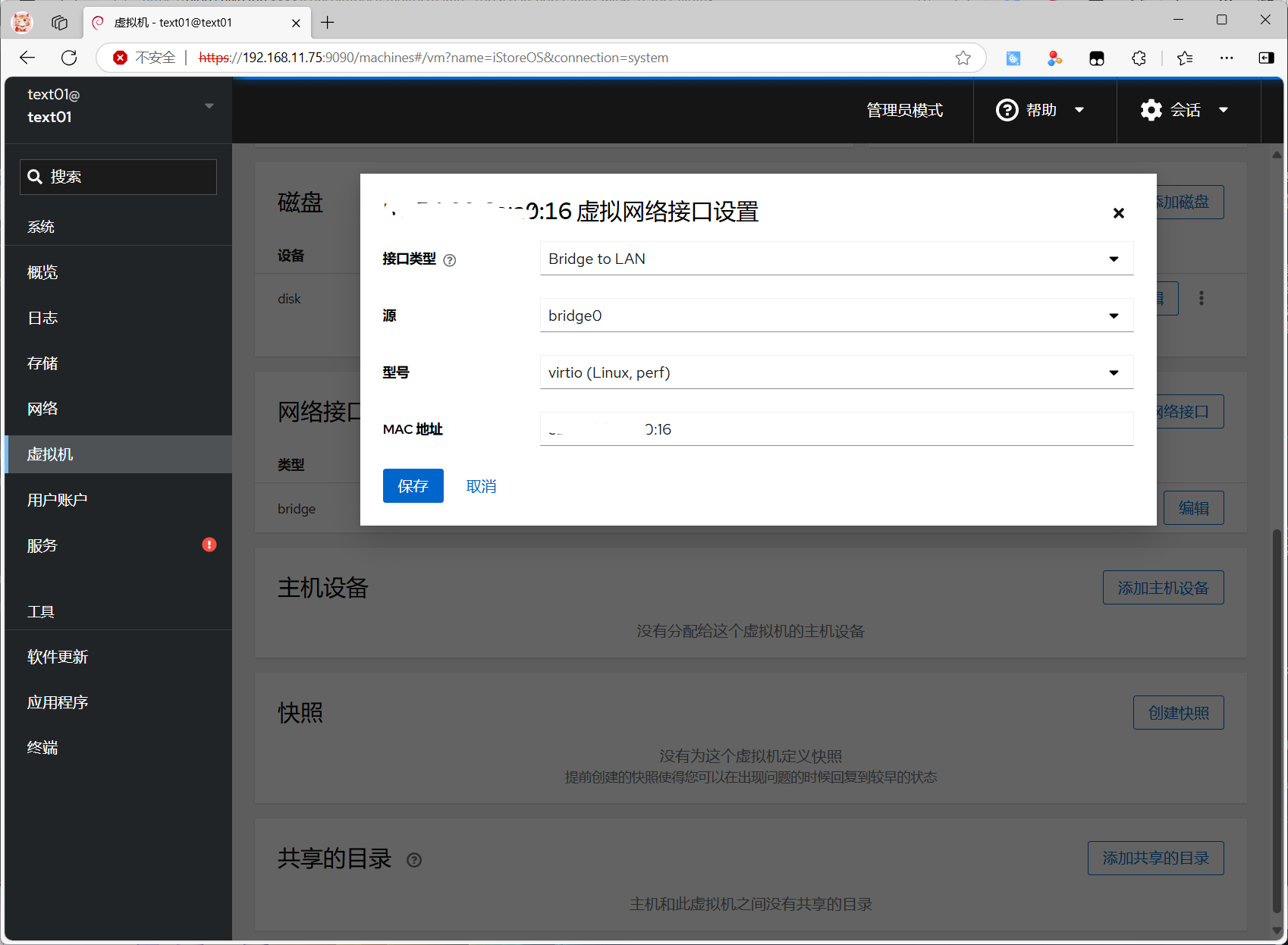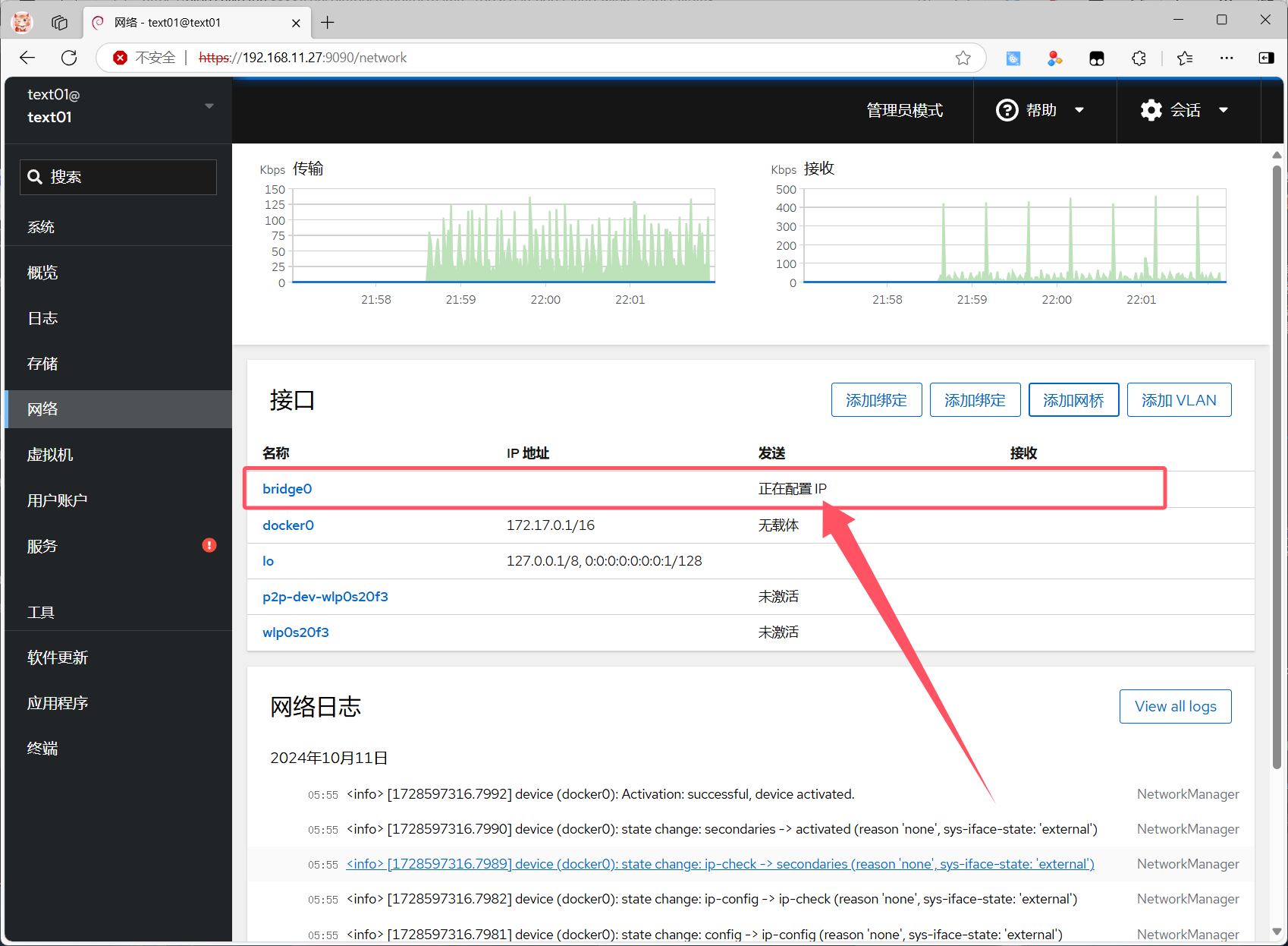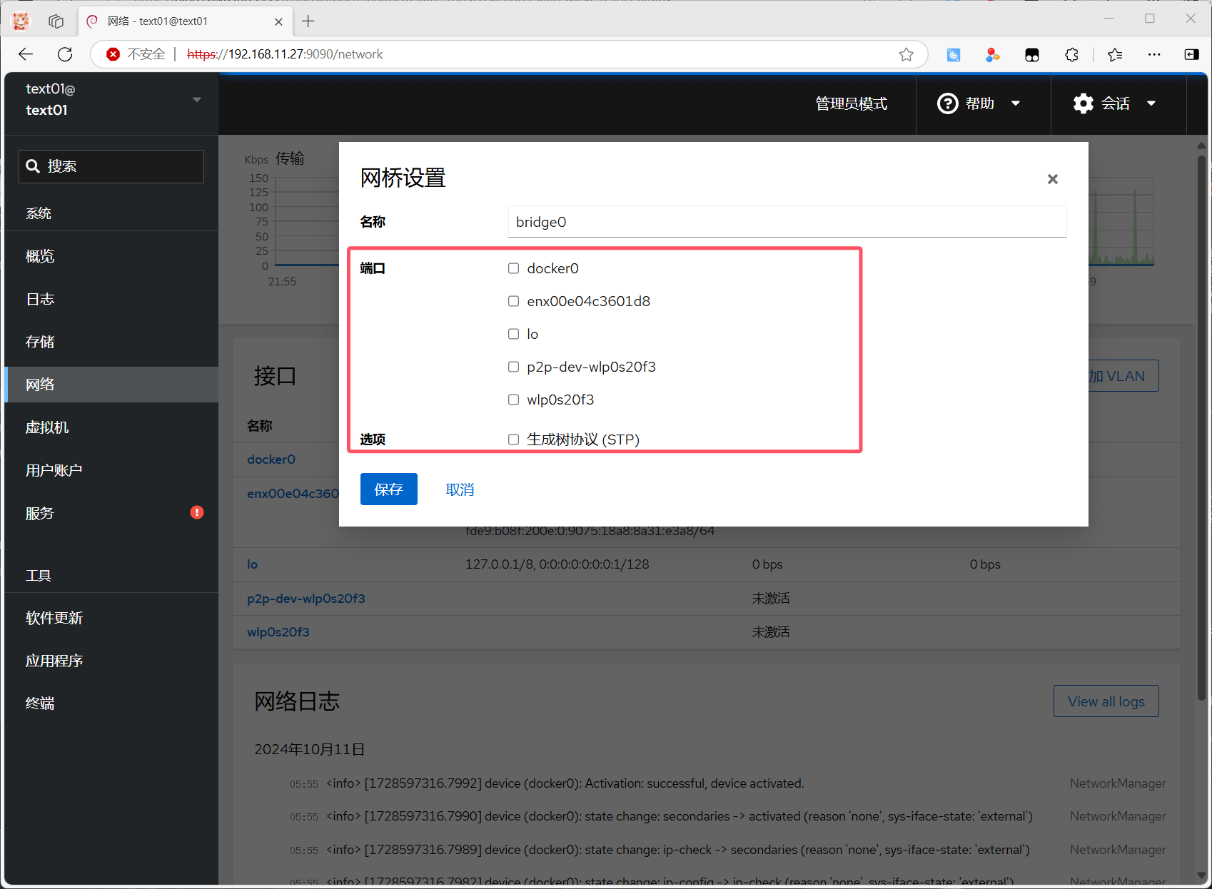 桥接后的网卡将不再显示在飞牛系统的管理面板中,但不影响使用,后续会说调整IP方法