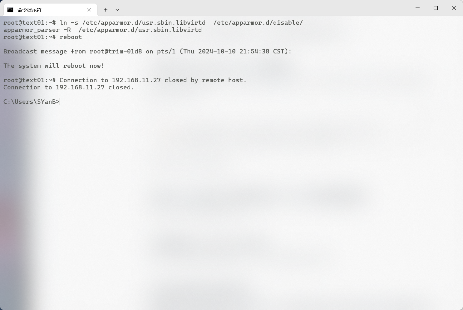 Libvirt在执行和访问系统文件的时候会被Apparmor阻挡,因此为了确保Libvirt始终有必须的权限,必须禁用apparmor