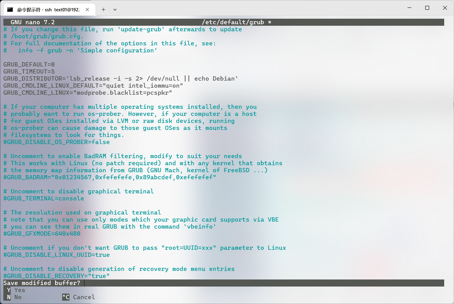 按下Ctrl+X推出编辑,输入Y保存修改,